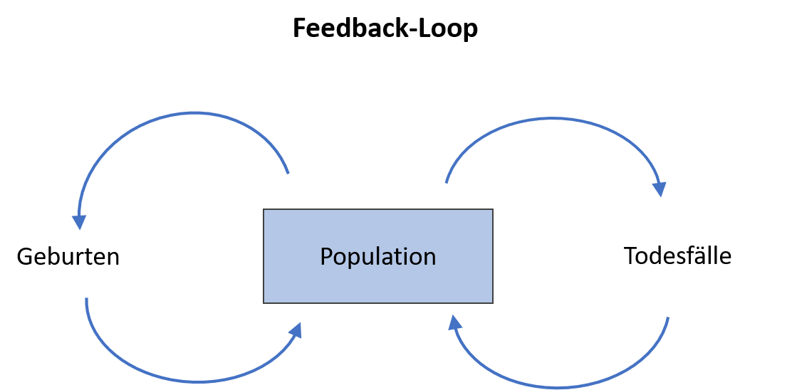 Die Entwicklung der Herdengröße wird durch Feedbacks oder Wirkungskopplungen bestimmt. So erhöhen mehr Mammuts die Anzahl an Geburten, allerdings reduzieren mehr tote Mammuts die Anzahl der Mammuts und damit auch die Todeszahlen.